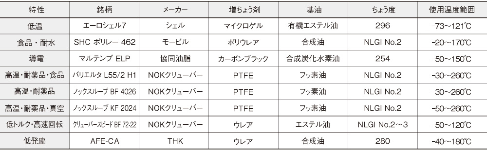 *上記の製品特性値はグリースメーカーカタログ値になります。また予告なく仕様を変更することがありますのでご了承願います。